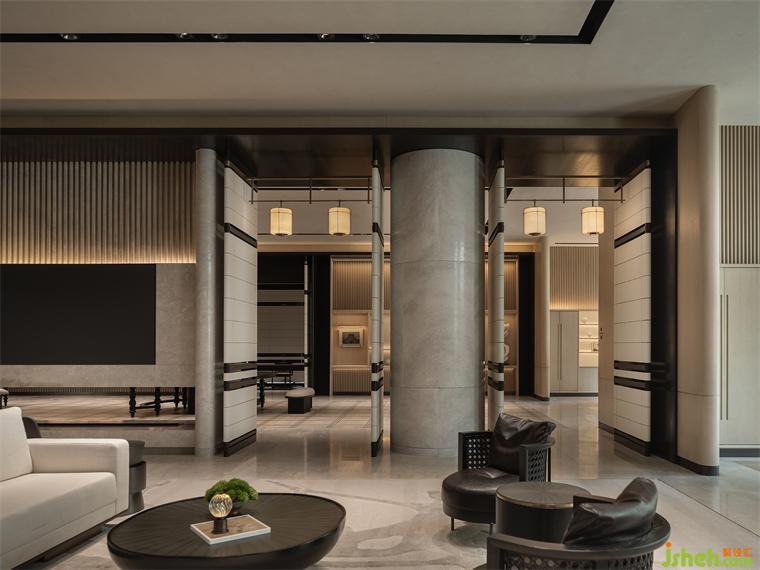 源自弄堂民居中天井的概念沿用于豁然疏朗的中軸大廳,空間燈光通過(guò)智能化科技適度模擬自然光譜,結(jié)合不同材質(zhì)、線條、造型的精密調(diào)節(jié),裝修設(shè)計(jì)營(yíng)造多維度全生命周期的生活體驗(yàn)與服務(wù)。