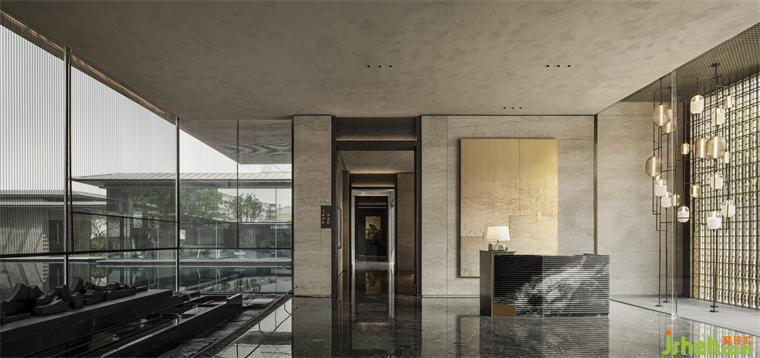 接待大廳模糊了與水景的界限,湖光瀲滟中,樹影婆娑,裝修設(shè)計(jì)四時(shí)之光景,天地之從容,皆納入空間規(guī)劃,成全東方式的隱奢之美。