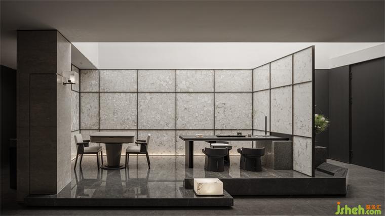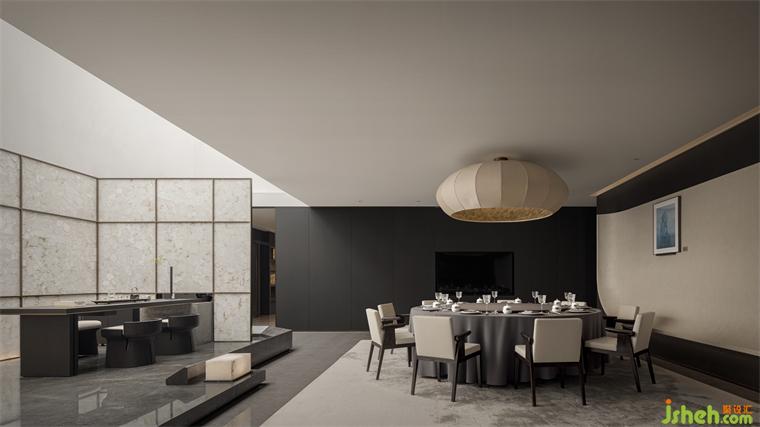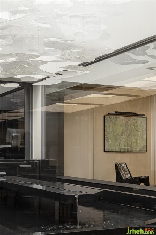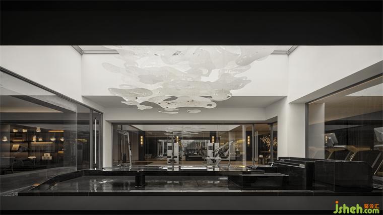 以光為引,鏈接起自然,將天地之精妙邀入空間,架構(gòu)起人與物的共生關(guān)系,使精神與自然無間聯(lián)通。一方天井的魔術(shù)構(gòu)建,契合古人室內(nèi)造園的妙意。采光窗納天地精華,會所設(shè)計上空懸掛融合蘇式傳統(tǒng)剪紙技藝的亞克力裝置,若層層疊疊的云霧,與下方山石水景相互輝映,別有雅趣。
