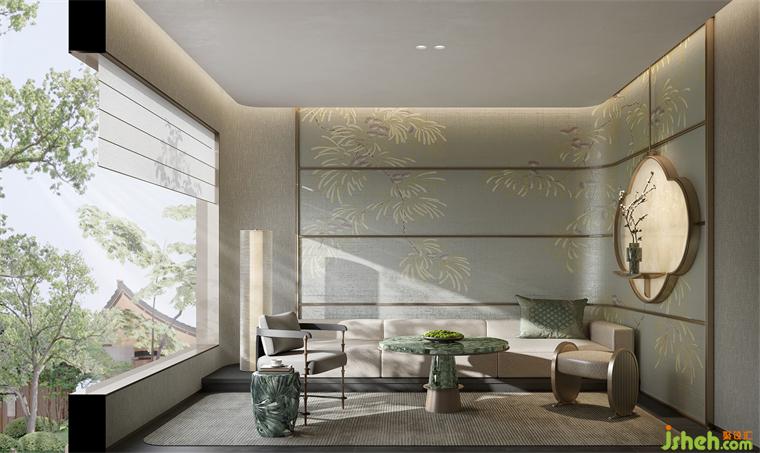 售樓處設(shè)計(jì)以工筆花朵鋪陳墻面,設(shè)色淡雅,清雅脫俗。尤其日光斜照,花影綽綽,仿佛置身于花叢中,令人低徊不已。