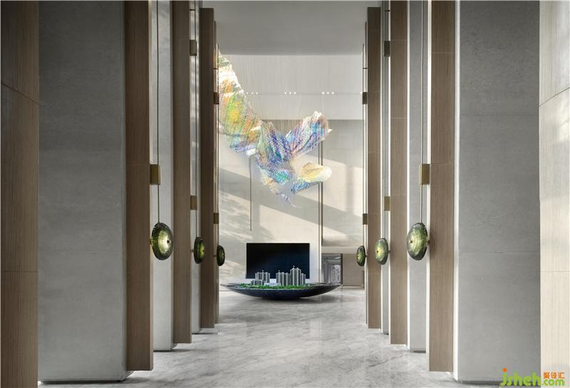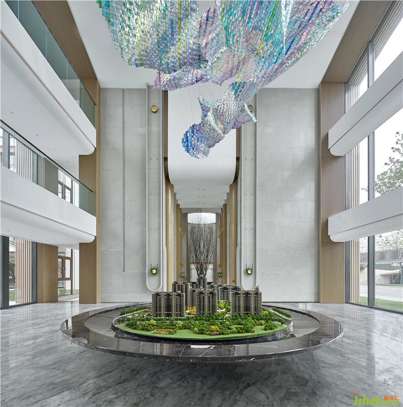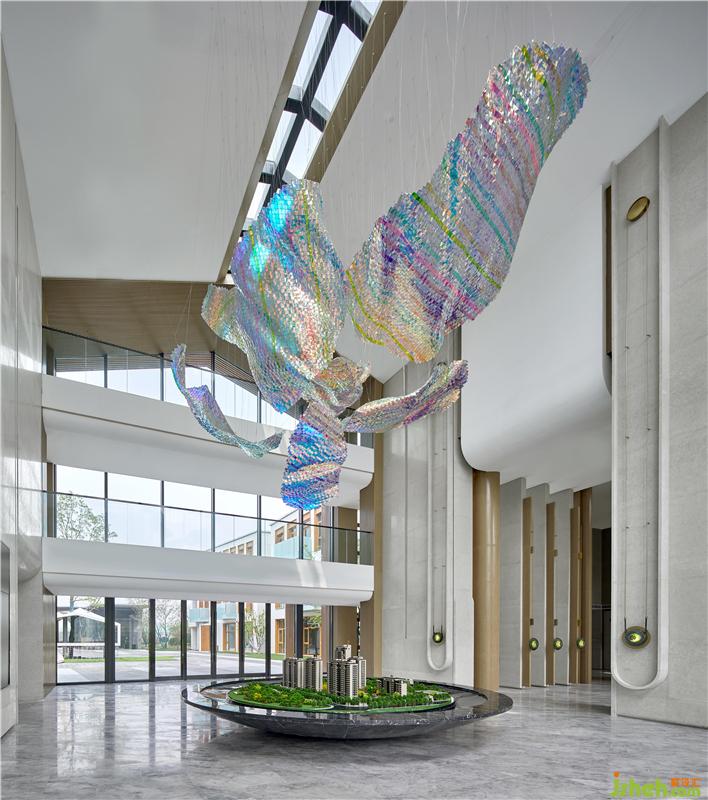 大型藝術(shù)天花裝置時空夢網(wǎng),如夢織網(wǎng),用玻璃材質(zhì)映照出五彩斑斕的光,勾勒唯美大氣的意境。似氤氳的甜蜜氣息,帶著不可觸碰的美,在心靈里跌撞。雅灰的墻面是最好的襯托,寬宏的空間內(nèi)并不寂寞。裝修公司