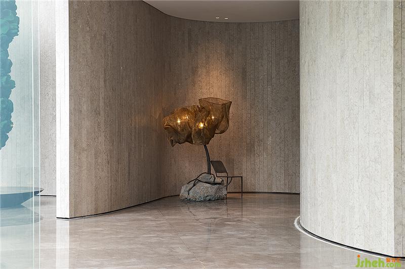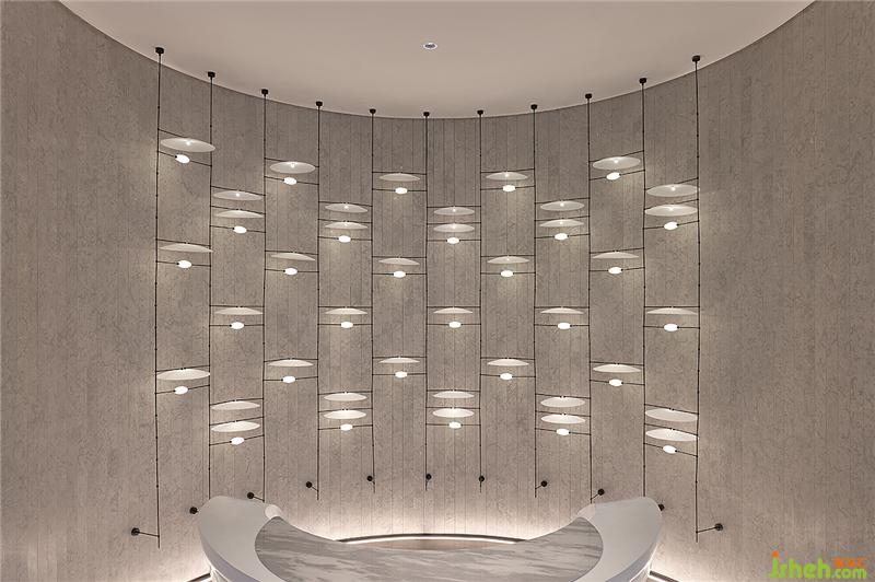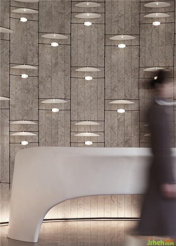 走過(guò)藝術(shù)廳,穿過(guò)前廳接待臺(tái),是一個(gè)從贊嘆驚艷的視覺(jué)享受,逐步沉淀到心靈層面的歷程。前廳接待臺(tái)以棋盤排列式燈光配置,溫暖打造有如梵高星夜般靜謐優(yōu)美的角落,讓匆忙思緒逐漸沉淀,回歸心靈的沉靜步調(diào)。