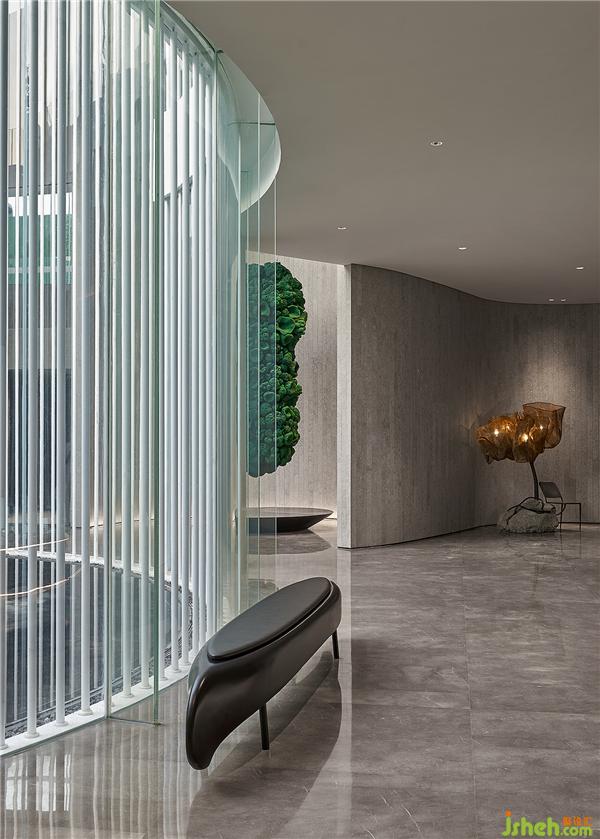 陽(yáng)光雨露滋養(yǎng)萬(wàn)物生長(zhǎng),“穴棲群落”于此獲得能量,設(shè)計(jì)師嘗試以一枚苔蘚或一只昆蟲(chóng)的姿態(tài)體會(huì)宇宙自然,在溫暖與克制之間游刃有余。大片的落地玻璃,變成一種空間的美學(xué)形式,室內(nèi)與室外的空間沒(méi)有絕對(duì)的隔斷,陽(yáng)光灑在室內(nèi),又看得見(jiàn)風(fēng)景,一種通透的感覺(jué)。人與自然可以有“隔”,可是這個(gè)“隔”又是可以連接的。