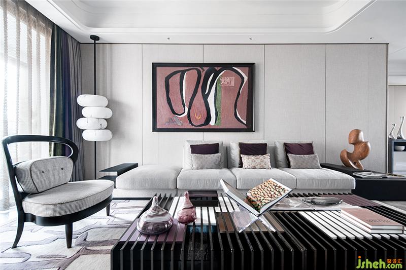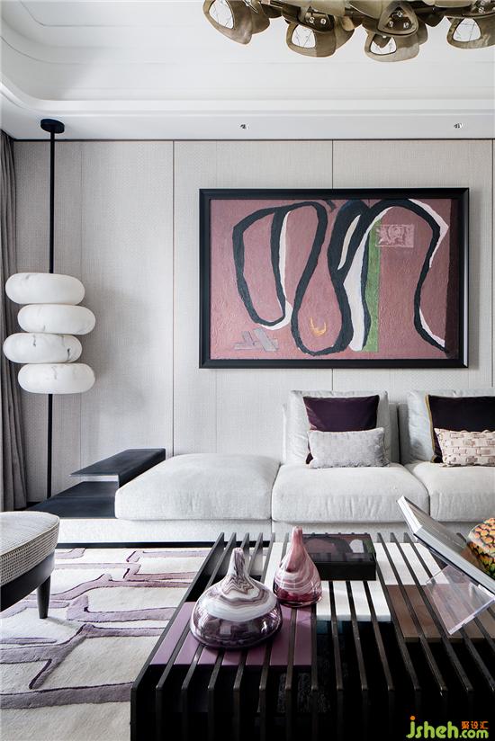 當(dāng)我們進(jìn)入這個(gè)空間時(shí),捉摸不定眼前是過(guò)去還是未來(lái),那是一種耐人尋味的時(shí)空理念。WJID用極具上海風(fēng)情的粉紫色作為空間主基調(diào)。設(shè)計(jì)中將室內(nèi)空間視為一張三度空間的抽象畫,從上層的墻飾,中層的沙發(fā),到透視茶幾,展現(xiàn)一種循序漸進(jìn)的,有如東方水墨式的層次美學(xué)。樣板房設(shè)計(jì)