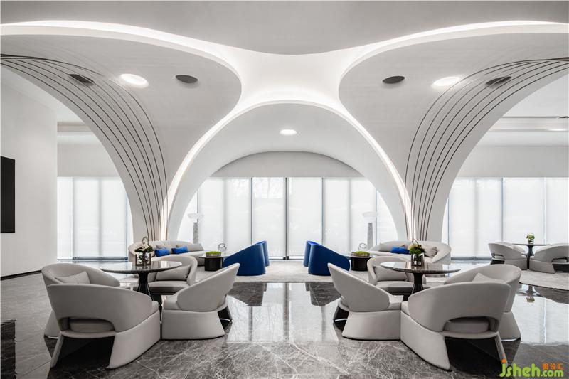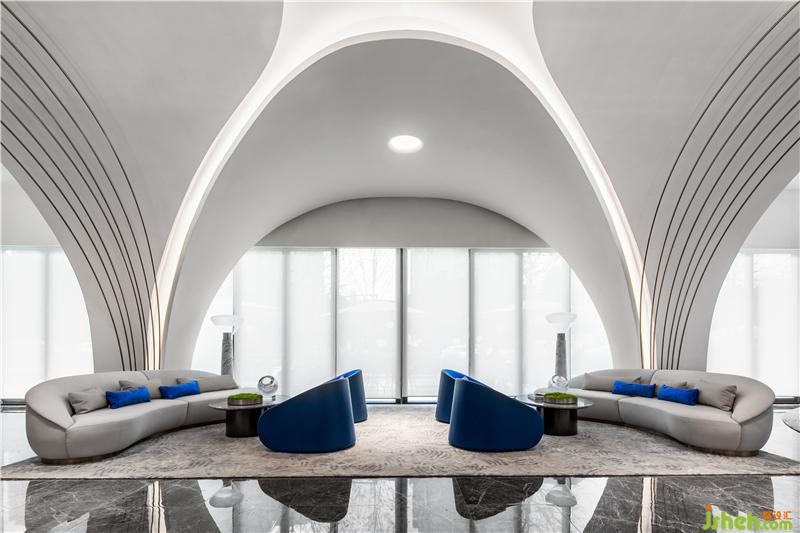 實際上,空間中白色曲線構成,是由鋼架搭建成的。這使該建筑既具備了一定的硬度,又能夠在空間上看上去有自由流動的效果。裝修公司