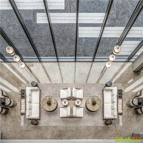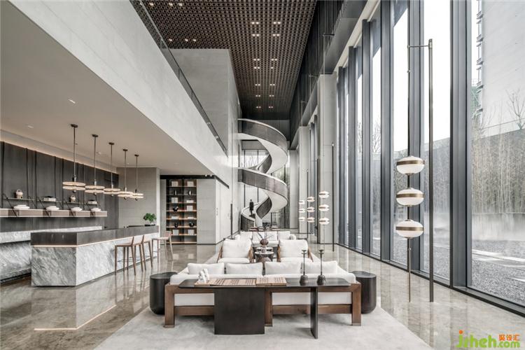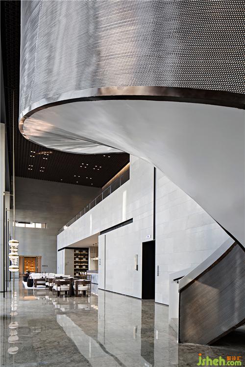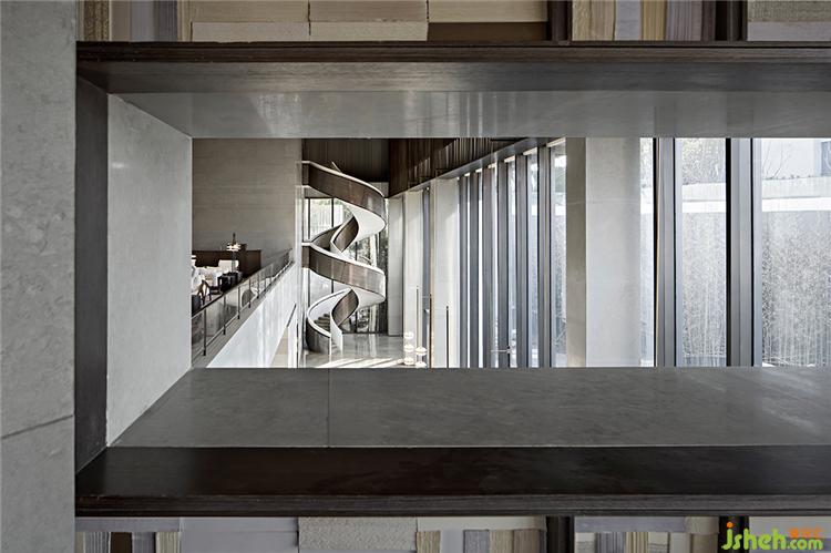 樓梯旋轉(zhuǎn),從空靈的美術(shù)館轉(zhuǎn)入豐饒的洽談空間。