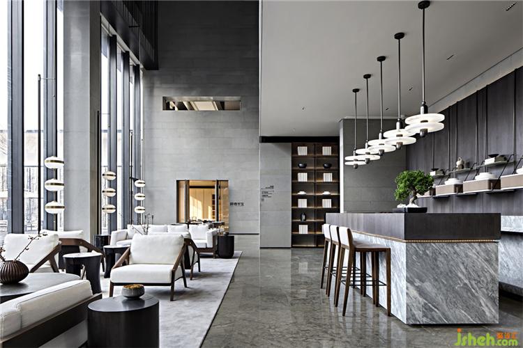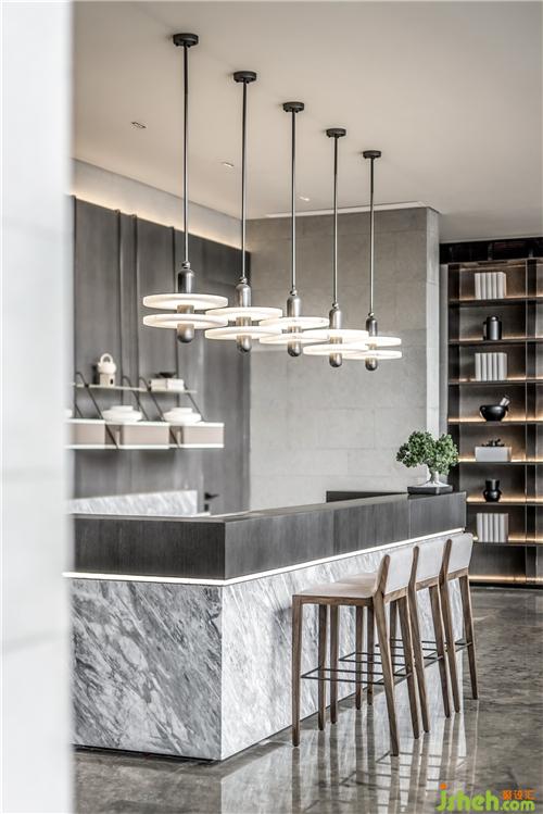 水吧延續(xù)簡潔質(zhì)感,質(zhì)感的大理石與溫暖木材的配色,濃度不同的灰色變化出豐富的層次感,協(xié)調(diào)出一個有溫度又精巧的空間,營造出一種經(jīng)歲月沉淀的慵懶與淡然。