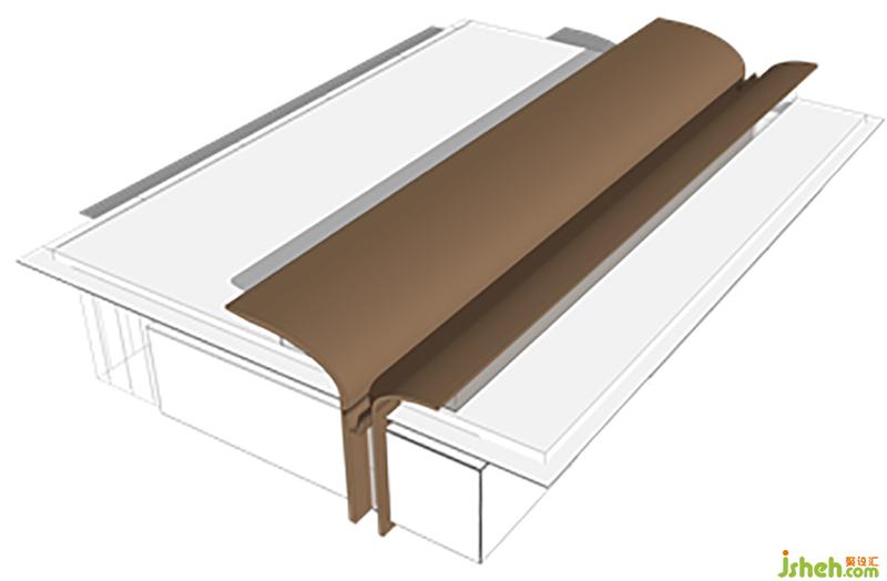 建筑主體是一本翻開的書,朝天卷起的曲線屋頂形似書脊,與墻體之間有一個空隙,這使得天光得以進入。