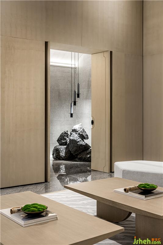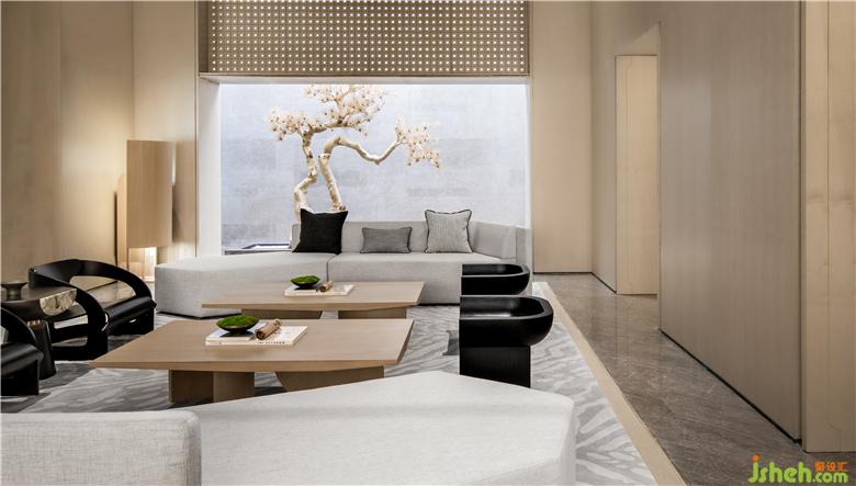 卷軸的形態(tài)同樣延伸到家具設(shè)計(jì)中,嚴(yán)謹(jǐn)?shù)募?xì)節(jié)致敬那個(gè)極致審美的時(shí)代,一曲一折都帶著宋的格調(diào)。