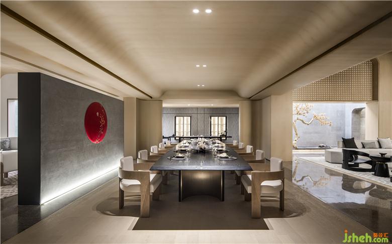 餐廳墻上藝術(shù)裝置的紅色直擊觀者的目光,華麗端雅,生動(dòng)卻不俗艷。一發(fā)新枝斜立其中,明凈搖曳,氤氳成一個(gè)王朝。
