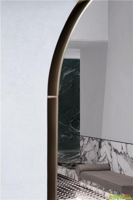 靈動(dòng)的大理石紋給純粹的幾何體增添了生命力,形體與花紋合并分離、融合疊加、交錯(cuò)互補(bǔ),以一種新的方式探索空間、層次和韻律之間的互動(dòng),詮釋輕奢空間的別樣美感。