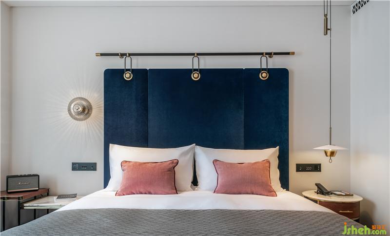 房間的床頭音響均為擁躉眾多的Marshall,這曾經(jīng)被稱作最適合聽交響樂和老爵士的品牌,音色飽滿而富有層次感,暗合了酒店與這片被稱為“音樂三角地”的街區(qū)之間的關(guān)系。