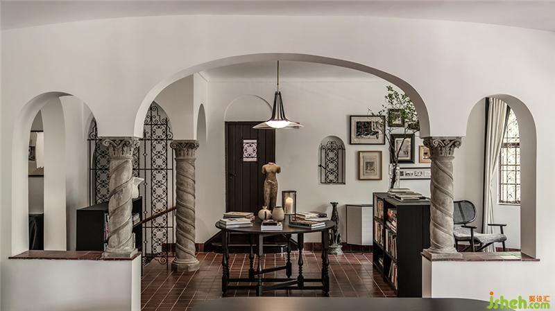 在歷史建筑修繕過(guò)程中,原本代表西班牙典型建筑風(fēng)格的元素被尊重與保留。一扇線條優(yōu)雅的拱門(mén),作為視覺(jué)序曲,帶你重回時(shí)光回廊。舊時(shí)的花廳經(jīng)由設(shè)計(jì)師黃全的改造重生,在保留原有經(jīng)典的基礎(chǔ)上,經(jīng)由深思熟慮的改造與設(shè)計(jì)方案,使舊上海在當(dāng)代又誕生了“新戲碼”。