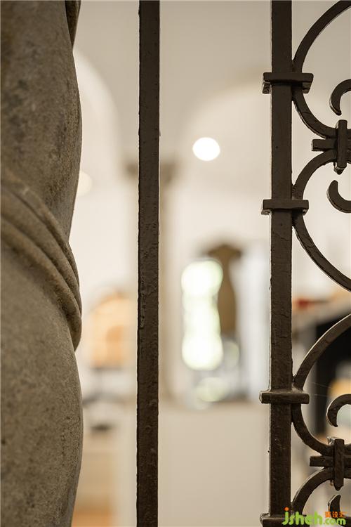 面對(duì)珍貴的老建筑,黃全探索其中的細(xì)枝末節(jié),在理性中傾注了更多的感性思考,考據(jù)建筑的一磚一瓦,將風(fēng)情引入,釀造空間情緒。透過(guò)細(xì)花樣的西班牙式鐵藝花傳遞一份老上海的洋腔,使線條在空間各處如菁如蔓延伸,傳遞一份舊上海記憶的溫度與情懷。