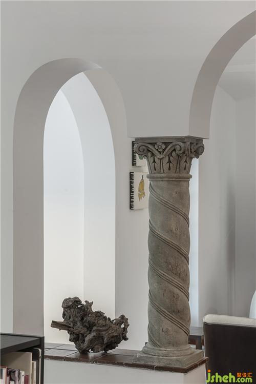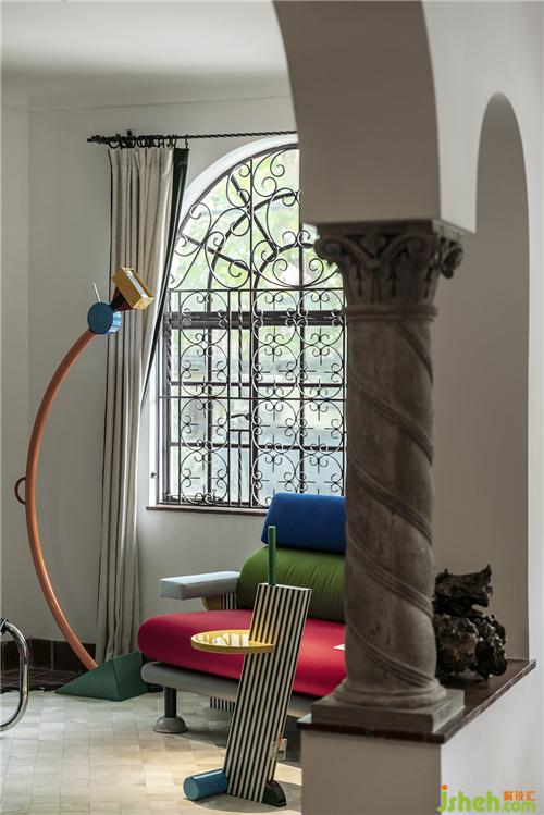 老建筑改造的“洋手法”以解構式的現代藝術語言呈現??臻g妙趣橫生,古典意味的西班牙螺旋柱莊重、肅穆、浪漫。古典元素與前衛(wèi)藝術邂逅,帶來思緒靈感。色彩運用與空間設定調和出一處自由沉溺的烏托邦,讓觀者在飄忽思緒,抵達未知之域。