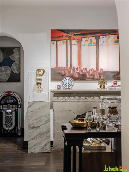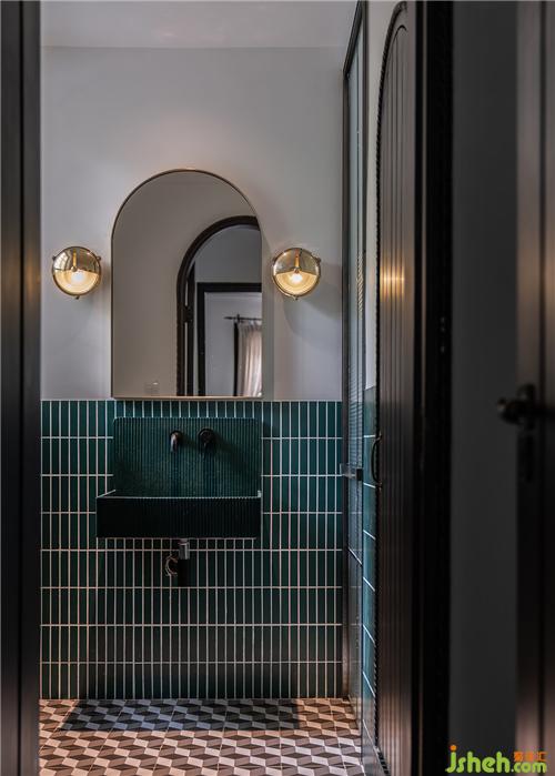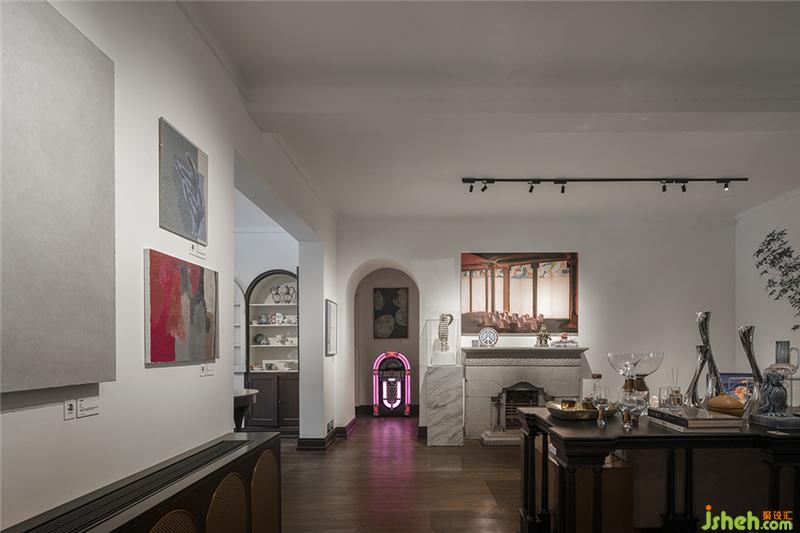 白墻壁與馬賽克花磚玩味出幾分波普藝術(shù)的風(fēng)情,又填復(fù)古黃銅燈,映照與記錄光輝,勾勒出老上海風(fēng)情的繁復(fù)記憶。