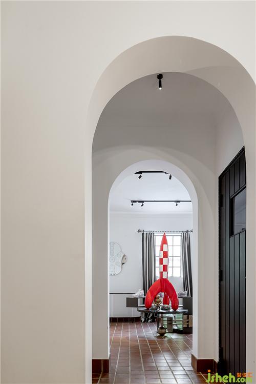 設(shè)計師通過空間的圍合、遞進(jìn)、錯落,使得數(shù)道拱門形成一定的空間序列。復(fù)制、黏貼般地頻現(xiàn)手法,卻通過巧妙變幻消除乏味,呈現(xiàn)經(jīng)典建筑藝術(shù)的趣味性與幽默感上海裝修設(shè)計。