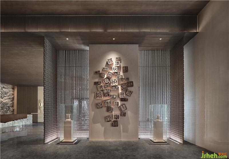 宋、元、明、清諸代文人騷客偏愛于賞景與抒意,來此留下摩崖石刻。設(shè)計師采用“題刻”元素,呈現(xiàn)空間的文風(fēng)古韻,表達(dá)今人對文人雅仕的懷古之情。