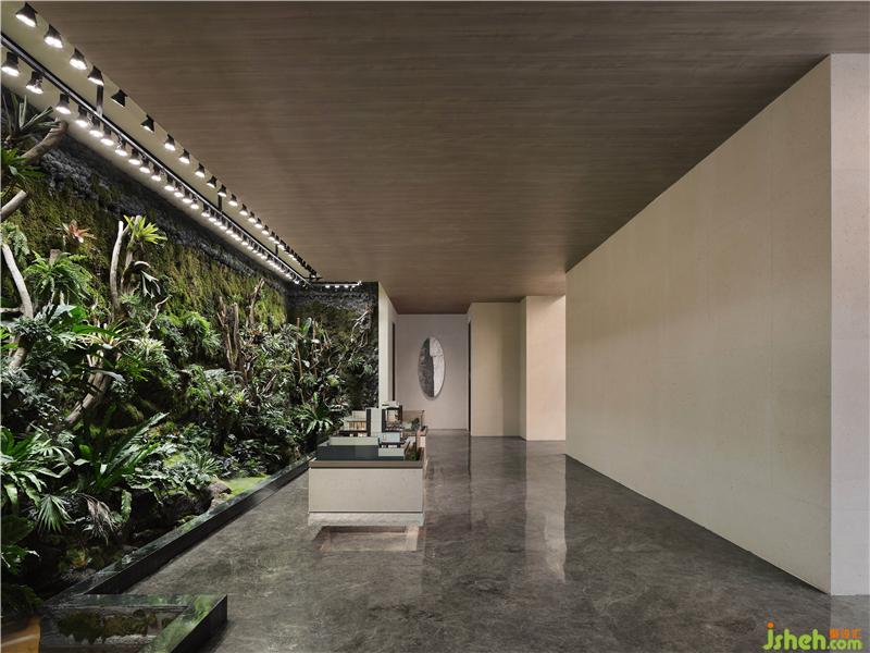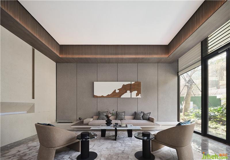 吊頂木質(zhì)元素的引用古樸、自然、溫和,上海售樓處設(shè)計(jì)大面積的落地窗隱藏內(nèi)外界限,石材質(zhì)走道與坐賓區(qū)沙發(fā)椅錯(cuò)落擺放,厚重而誠(chéng)摯,使到訪者賓至如歸。