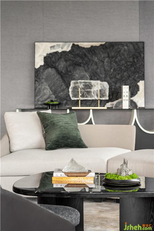 山石元素的大幅藝術作品寓意深刻,極具感召力,構筑如同美術館一般的微妙空間。