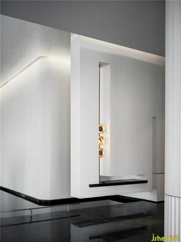 電梯廳藝術(shù)裝飾擁有珍珠般色澤,光彩斑斕中,充滿童真意趣。簡約的線條設(shè)計勾勒出一個寧靜空間,等待的片刻是寧靜與貼心的細(xì)致關(guān)照。