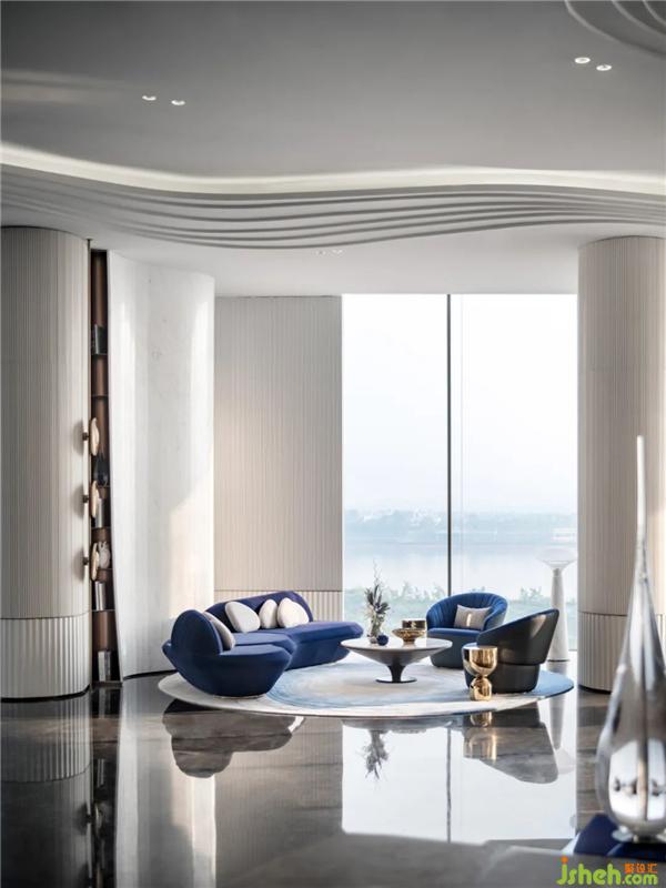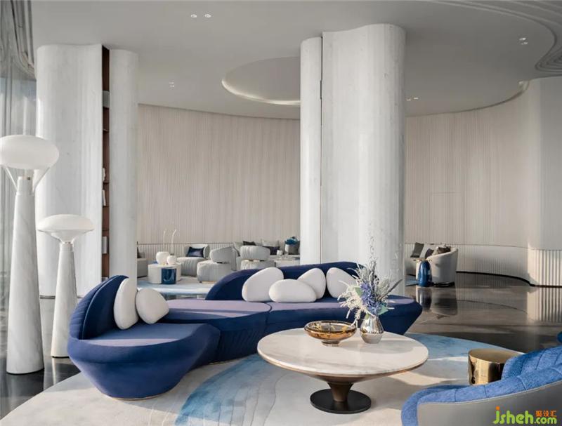 與海相依相生,這是一種生活的幸運。旭輝曜玥灣位于廣州南沙區(qū)明珠灣,坐擁一線濱海景觀帶。WJID將藍(lán)與白聚焦為一道空間韻律的靈感,將夢幻海域的神秘、純粹、靜穆譯作浪漫的空間之詩,凝練雋永的空間想象,通過簡約的設(shè)計映