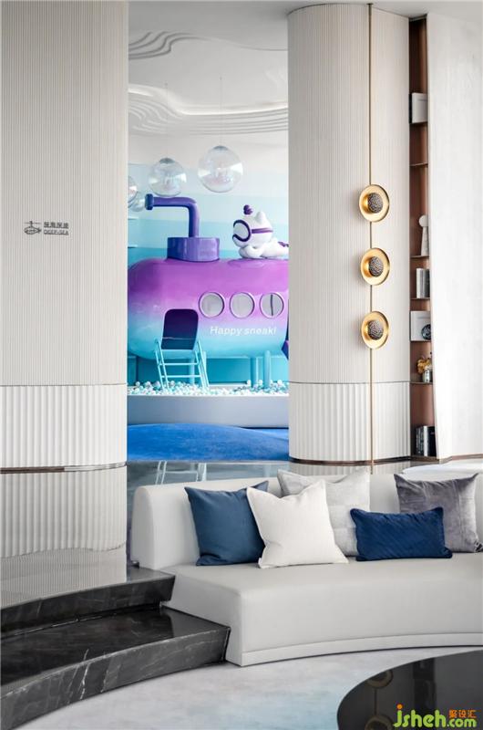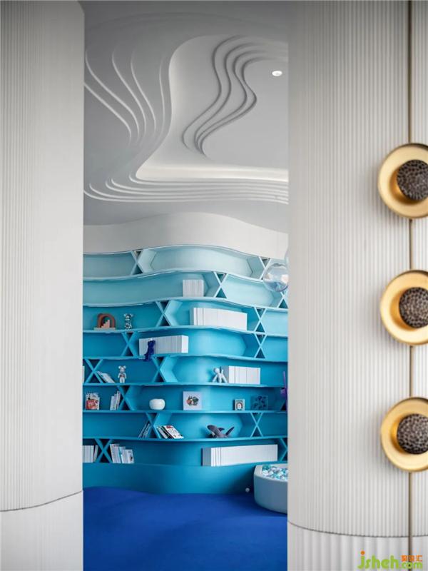 設(shè)計(jì)師在三層兒童娛樂(lè)區(qū)以深入淺出的漸變色進(jìn)行巧妙分割,在流動(dòng)的光影中,帶來(lái)意趣的無(wú)邊想象。