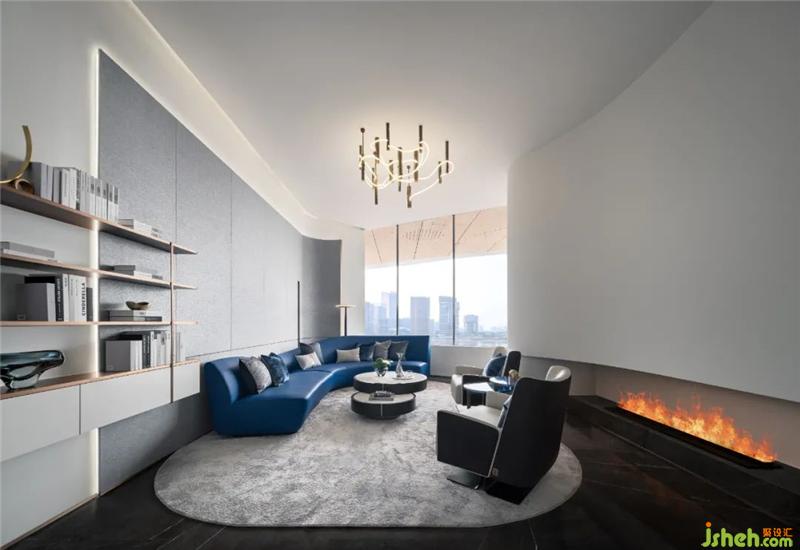 結(jié)構(gòu)與取景是這一區(qū)域重點(diǎn)強(qiáng)調(diào)的元素。盡管曲線的表達(dá)難于言說(shuō)與琢磨,但局部的定調(diào)與框架又能形成視覺(jué)統(tǒng)一。藝術(shù)性的純藍(lán)再度出現(xiàn),在流線型的表達(dá)中,不同角度的取景帶來(lái)多形態(tài)的豐富之景。