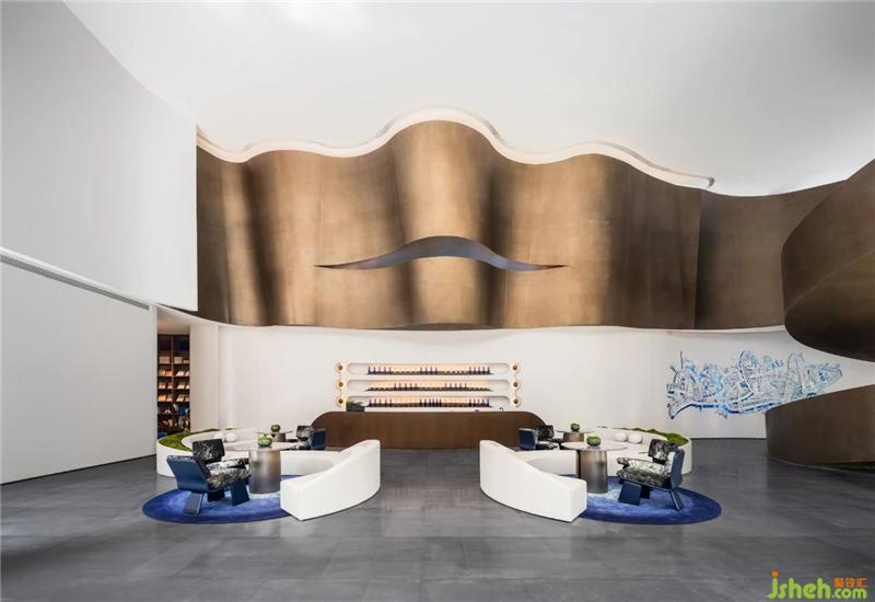 在城市的星球部落,譜寫一支暢快、律動的城市交響曲。在變化的空間韻律中,曲線如變化音符,在空間的靜動變化中跳躍,使人沉浸于如同星球探索般的樂趣。