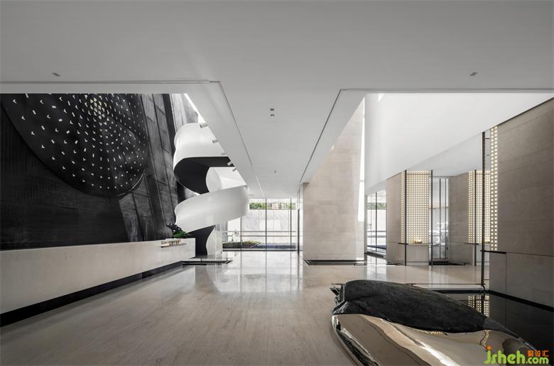 營銷中心設(shè)計簡約的空間通過黑、白、大地色,以及線條與體塊,完成空間表現(xiàn)的最大化。黑與白的顏色藝術(shù)如設(shè)計師與空間下的一盤棋,與現(xiàn)代經(jīng)典的空間對話中,時尚感在減法中煥然新生。