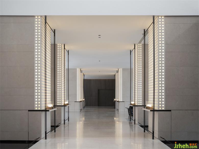 延安的紅磚給了設(shè)計師一道靈感,因而將其進行圖形化演繹,并以石材質(zhì)賦予其質(zhì)樸的自然質(zhì)感。在地性的元素經(jīng)過二次藝術(shù)性創(chuàng)造,也即形成了空間趣味性的面光布局。