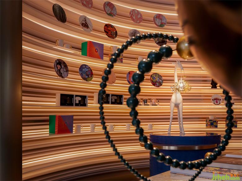 展示廳創(chuàng)造了一個(gè)虛幻的世界。曲面的展廳帶來極具張力的感受,琳瑯的陳列色彩極盡豐富。
