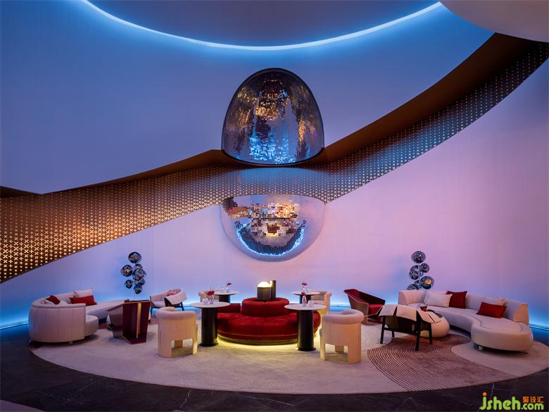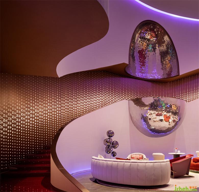 在爵士酒吧氛圍的營造中,設(shè)計(jì)師搭配燈光,賦予空間曲線鮮活、靈動(dòng)的情境。