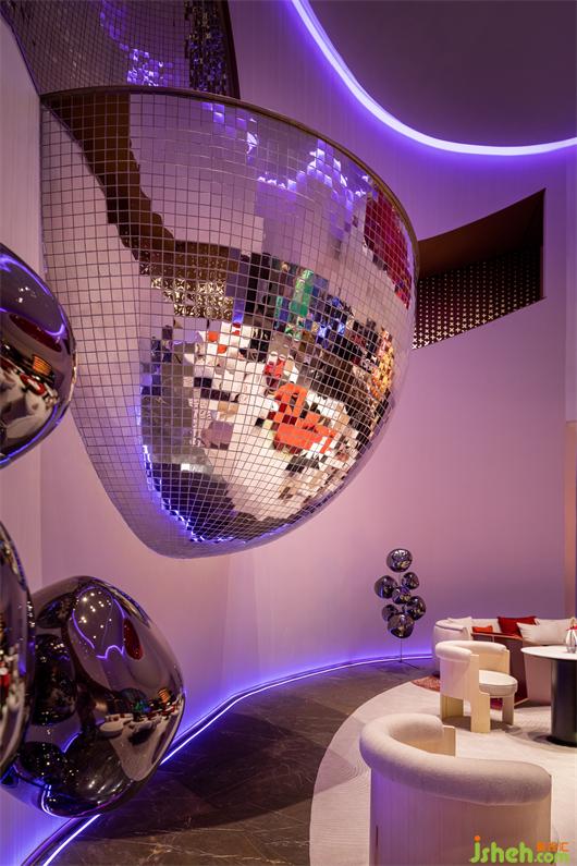 極富形式感的家具,是空間的獨(dú)特坐標(biāo)。擁有金屬質(zhì)感的光帶是空間基底,閃著熠熠星光,仿佛在無形中宣告著,這就是一處明星場所。