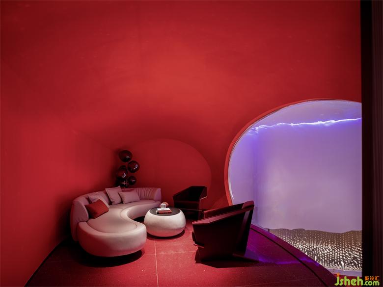直播間設(shè)計的初衷是要打造一個創(chuàng)意孵化的空間,也讓訪客得到沉浸式體驗。酒店設(shè)計強烈直接的紅色將空間覆蓋以火焰般的熱情,整個空間籠罩在色彩氛圍里。
