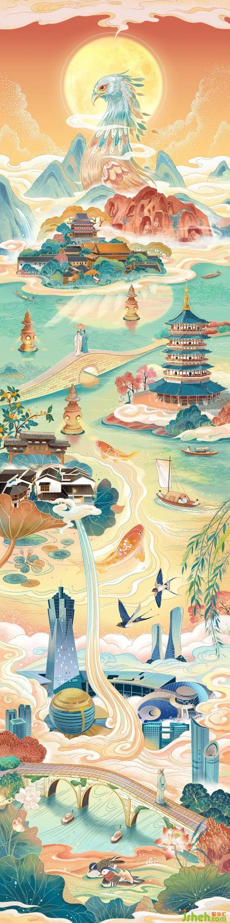 日光照拂神州大地翠柳、碧荷、嬌燕、錦鯉棲息古建與水鄉(xiāng)纏綿縈繞千年的杭州古韻拔地而起在此刻相遇以無邊的想象挈攜一抹中國意蘊