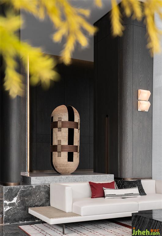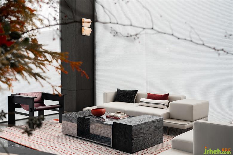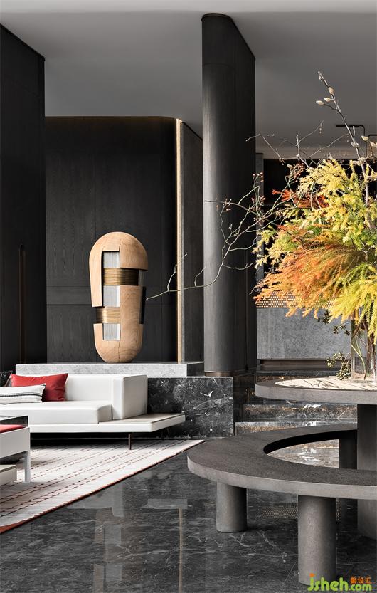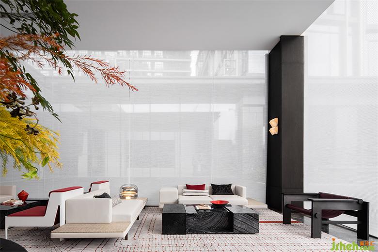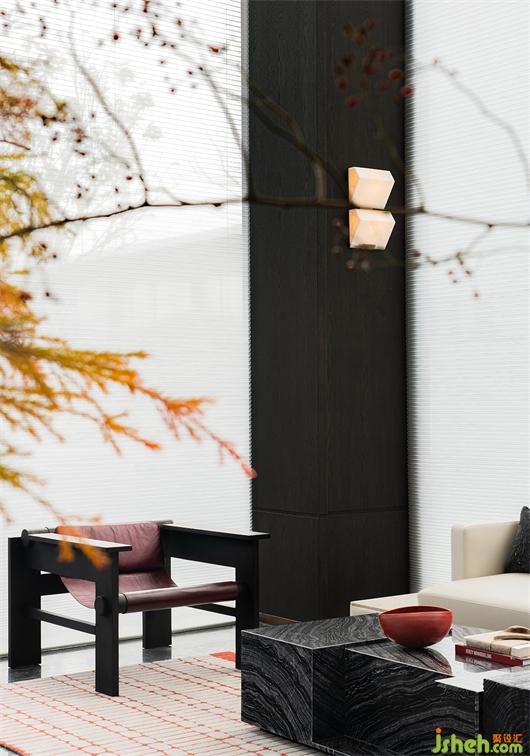 疏影橫斜,藝術(shù)化與戲劇性疊加,烘托出一個層次分明的會客區(qū)域。