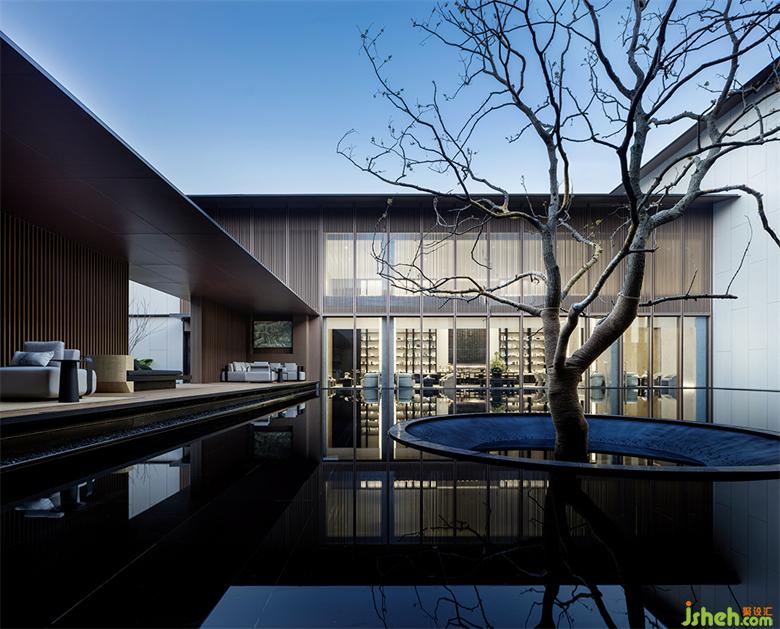 從序廳“詩之山水”到中庭正堂的“匠心書生”的書院文化,最后山重水復(fù)回歸山水,整體打造了一個(gè)流暢的觀景動(dòng)線。