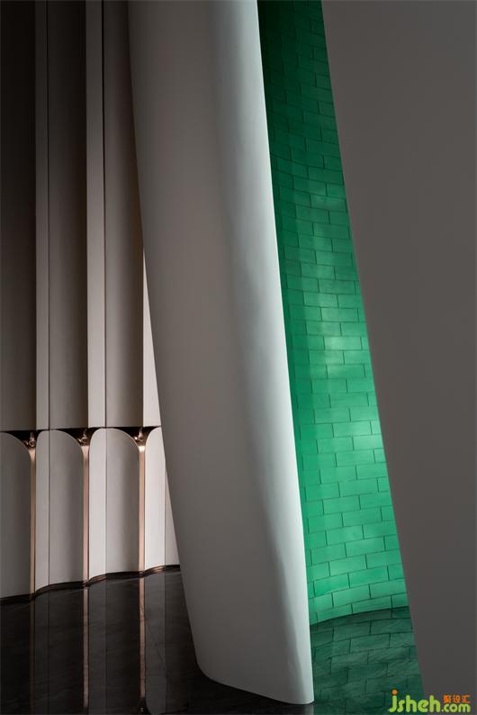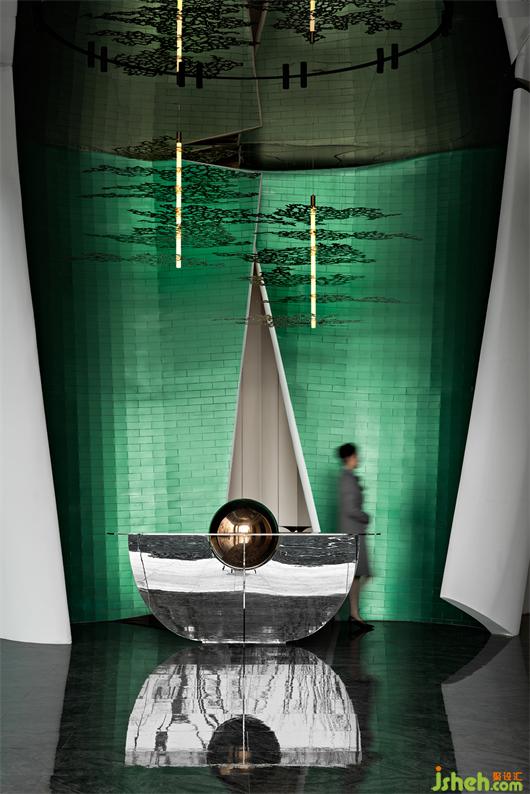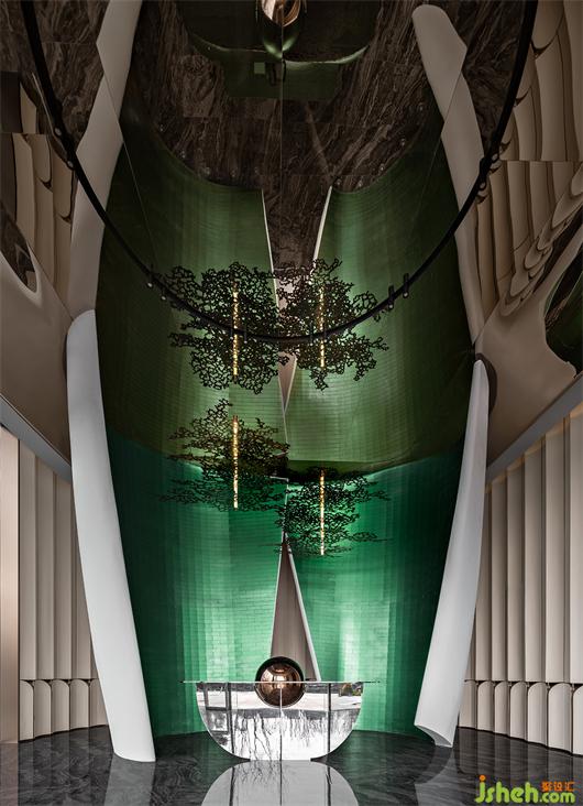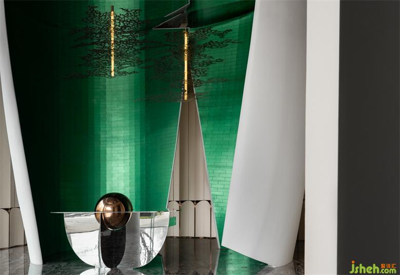 反光的吊頂、藝術(shù)漆、金屬堆疊出豐富的視覺(jué)層次,空間蘊(yùn)藏大膽的想象。