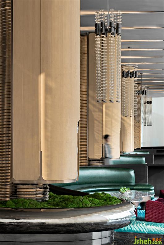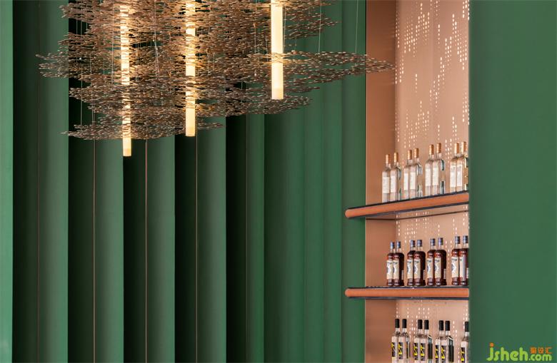 洽談區(qū)吊燈擬態(tài)雨滴穿過(guò)樹林灑落到地上,由此便可開啟大自然的篇章……