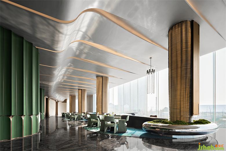 硬朗的金屬材質(zhì)增添貴氣感,剛?cè)岵?jì),武漢售樓處設(shè)計(jì)將空間的藝術(shù)筆致娓娓道來(lái)。透露著一種捕捉自然之美,并將之留存、再造美好寓意。