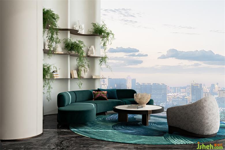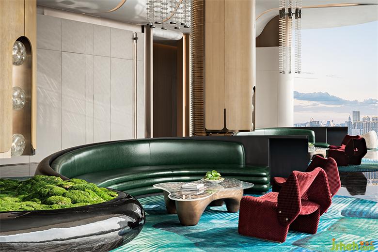 WJID 將綠色植入現(xiàn)代空間平衡色彩與材質(zhì)盡顯空間獨(dú)有的高奢品質(zhì)追求人與自然共生打造一座林隱都市的私人島嶼。