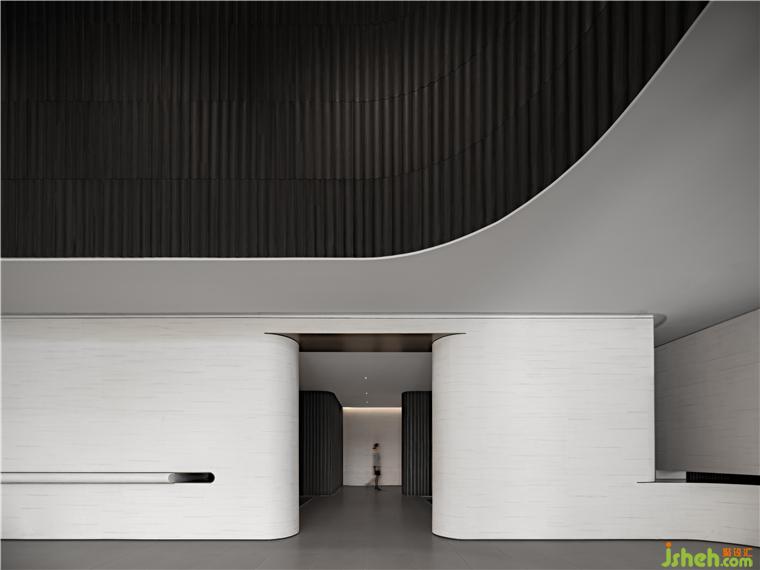 簡明的空間沒有冗雜的視覺焦點(diǎn),柔和的弧度與線條共譜優(yōu)雅旋律,營銷中心設(shè)計(jì)極簡美學(xué)在此做到減法的極致。