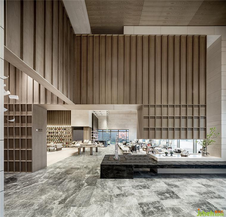 銷售中心設(shè)計(jì)裝置如書卷紛紛,亦如時(shí)光剝落,于木色交錯(cuò)相映,婆娑之間,藝術(shù)細(xì)節(jié)與書閣氣質(zhì)初現(xiàn)。