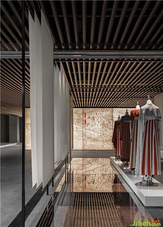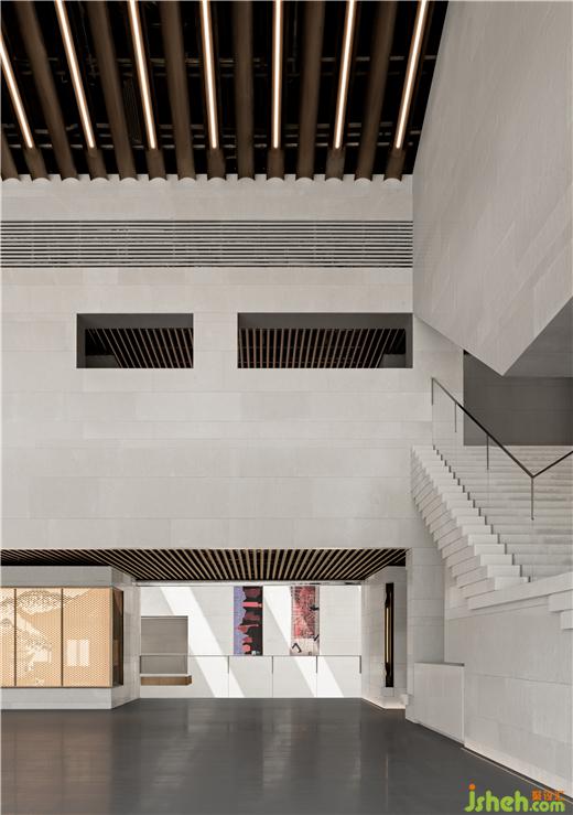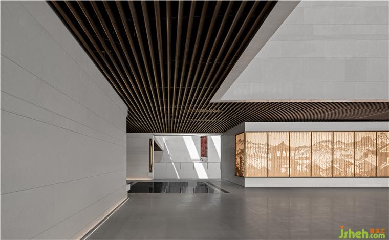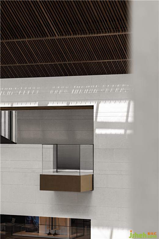 格柵形成一種空間的滲透和類景觀的營造,保證了室內(nèi)的通透明亮,亦營造了古樸大氣之風(fēng)。