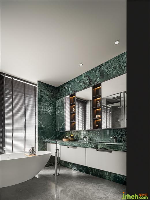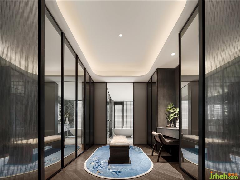 獨(dú)立的衣帽間、化妝臺(tái),卸下鉛塵繁雜,轉(zhuǎn)頭可見圓融如“不系舟”的浴缸,百葉窗保護(hù)隱私又不影響欣賞美景,杭州縵云樣板房設(shè)計(jì)讓溫?zé)岬姆曳及约?,享受全身心地放松,愛自己是要終身修習(xí)的浪漫。