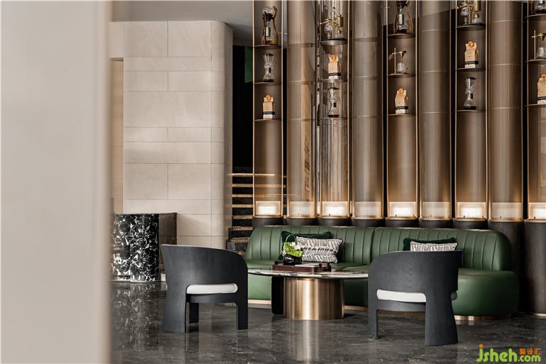 洽談區(qū)零星分散著小型桌椅與組合沙發(fā),布局、設計、材質和家具相得益彰。