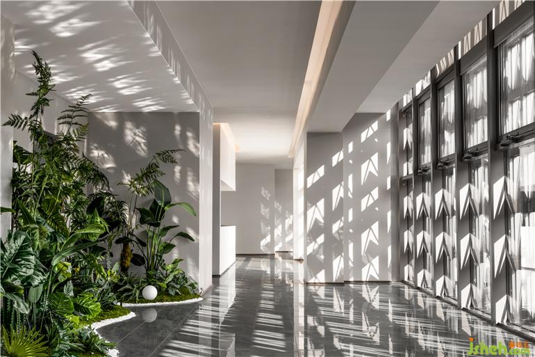 走廊內被賦予情感載體的意義,通過自然的光影、綠植予以鮮活自由的社交氣息,人與空間的關系變得更加緊密而有趣。