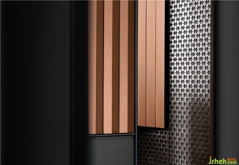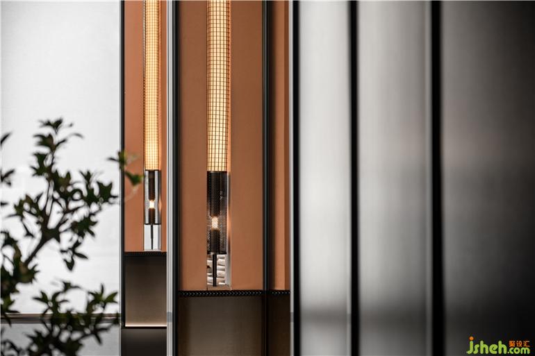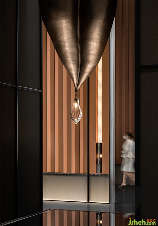 充分挖掘場域特征,橙紅如古卷底色,黑色大理石如濃墨勾勒山石,原木飾面敷貼于建筑體骼,金屬色澤映出燈光的繾綣,空間與自然,沉淀與靈動,理性與感性在此間交互,呈現(xiàn)出材料在建筑中的詩性。