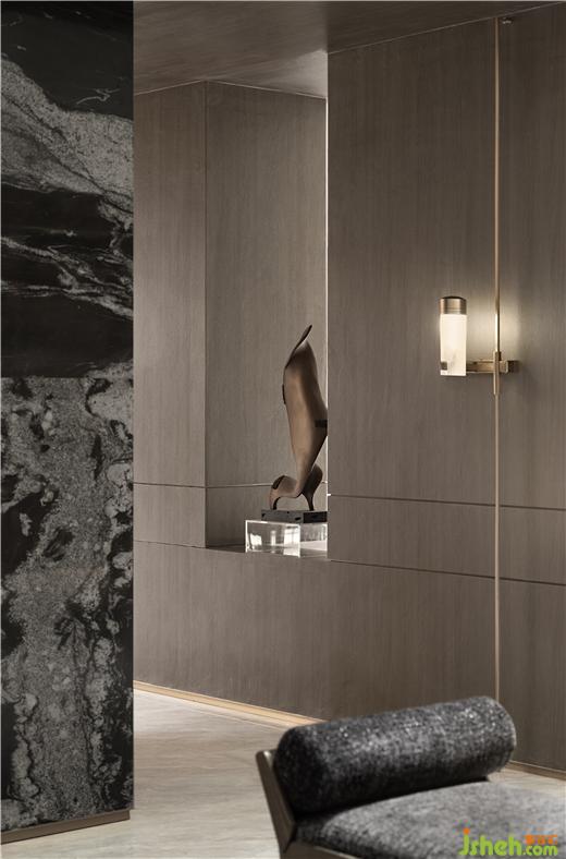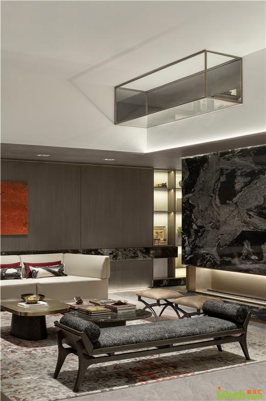 跳脫傳統(tǒng)的頂尖私宅作品,為極簡大宅賦予溫潤且自如的個性化特質(zhì)及精神表達。武漢綠城湖畔雲(yún)廬樣板房設計結(jié)合空間特質(zhì)打通了負一層與一層的側(cè)邊區(qū)域,將自然光線順利引入地下,擴寬了自然延續(xù)生長的空間,四季光景肆意流竄在整個家宅中。